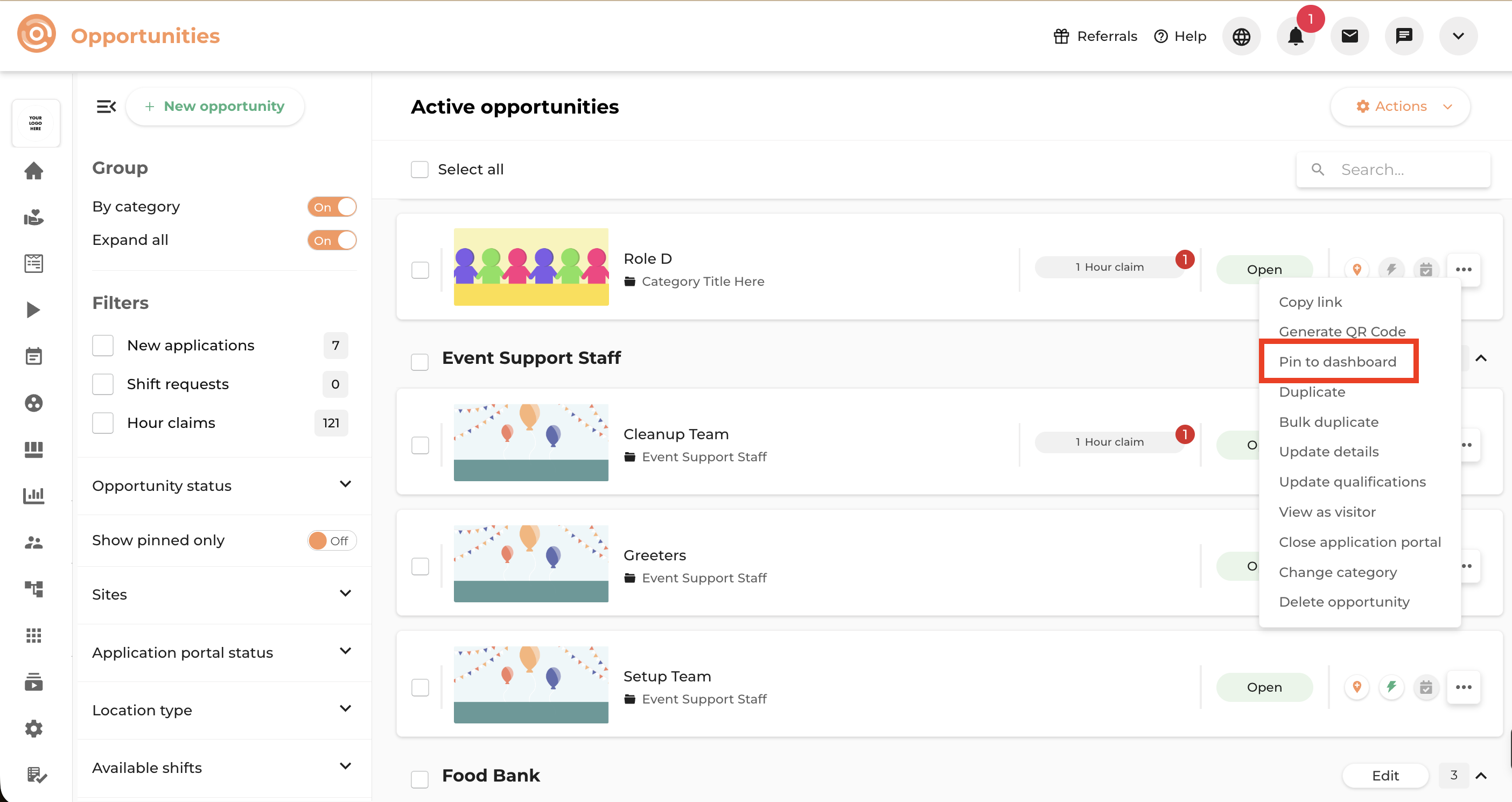 Pinned opportunities are used to gain quick oversight regarding the opportunities that are relevant to an individual admin profile. Each admin can pin their own opportunities. It is recommended for an admin to pin opportunities to their dashboard for ...