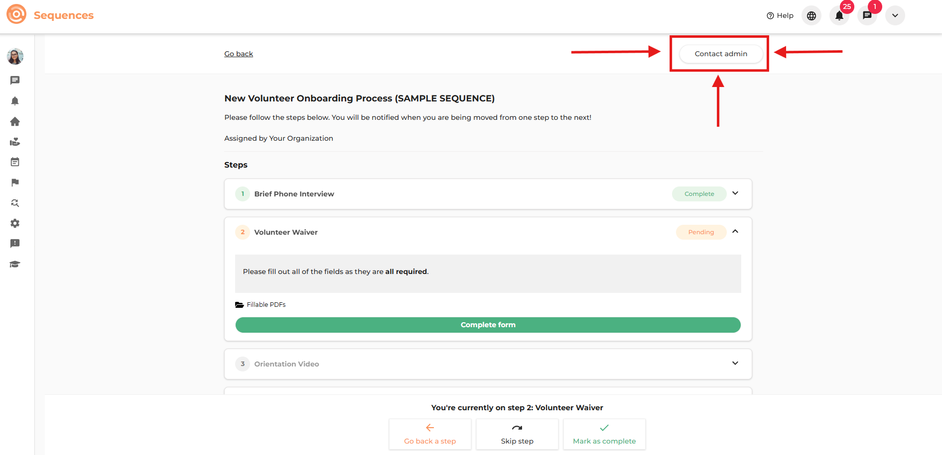 Use the Contact admin button in the top-right corner of your sequence view to reach them.