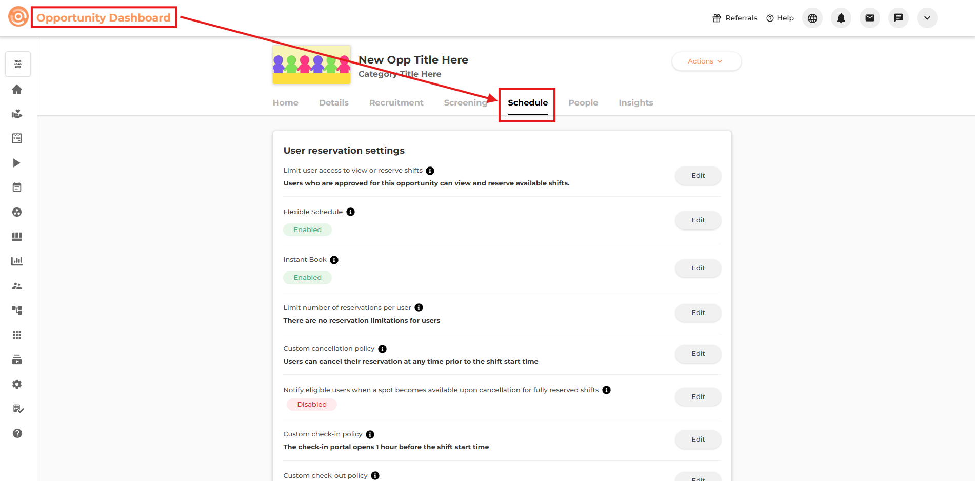 Allow users to create their own schedule within the opportunity instead of being limited to predefined shifts. User-generated shifts are visible to admins only.