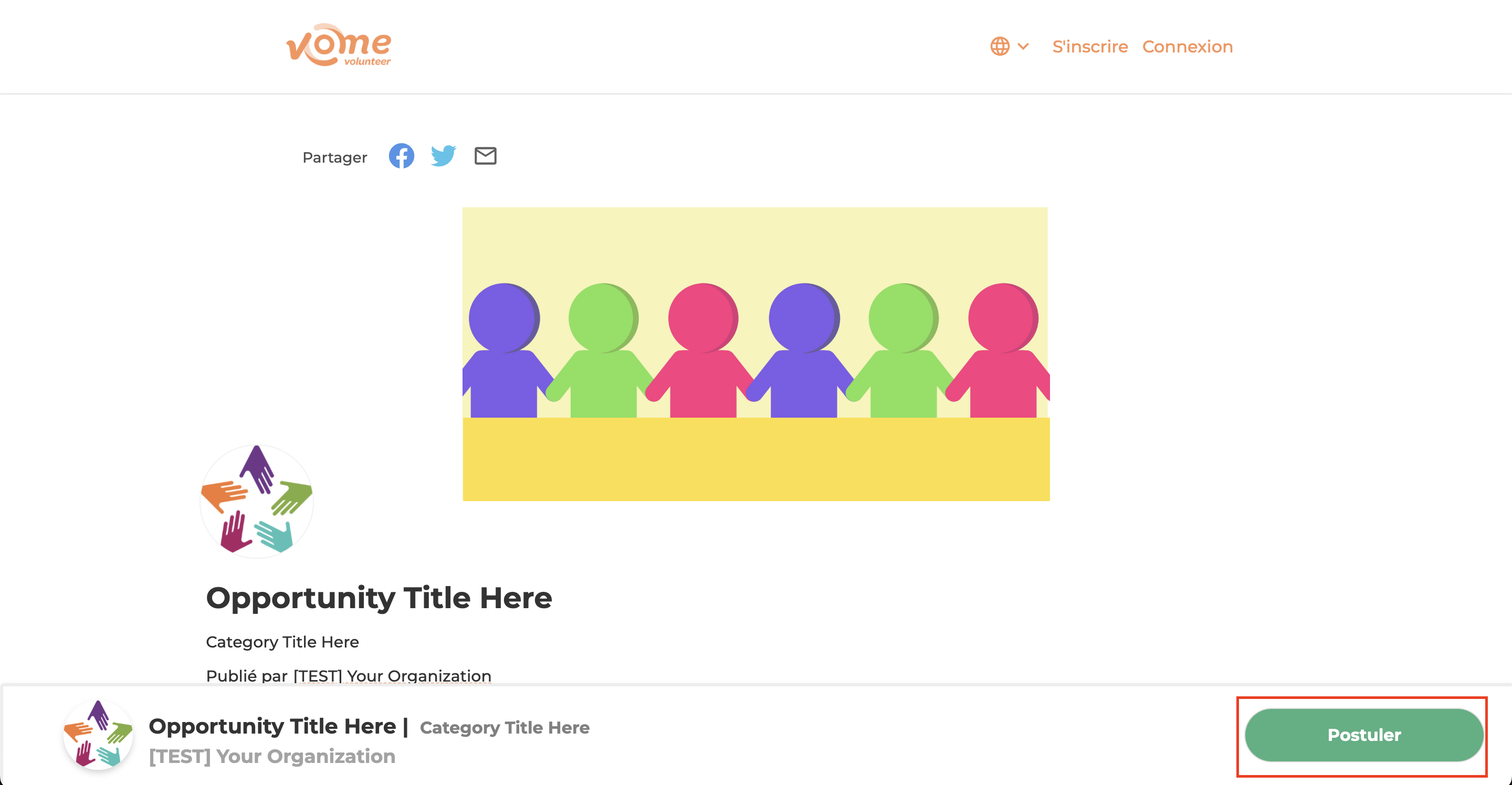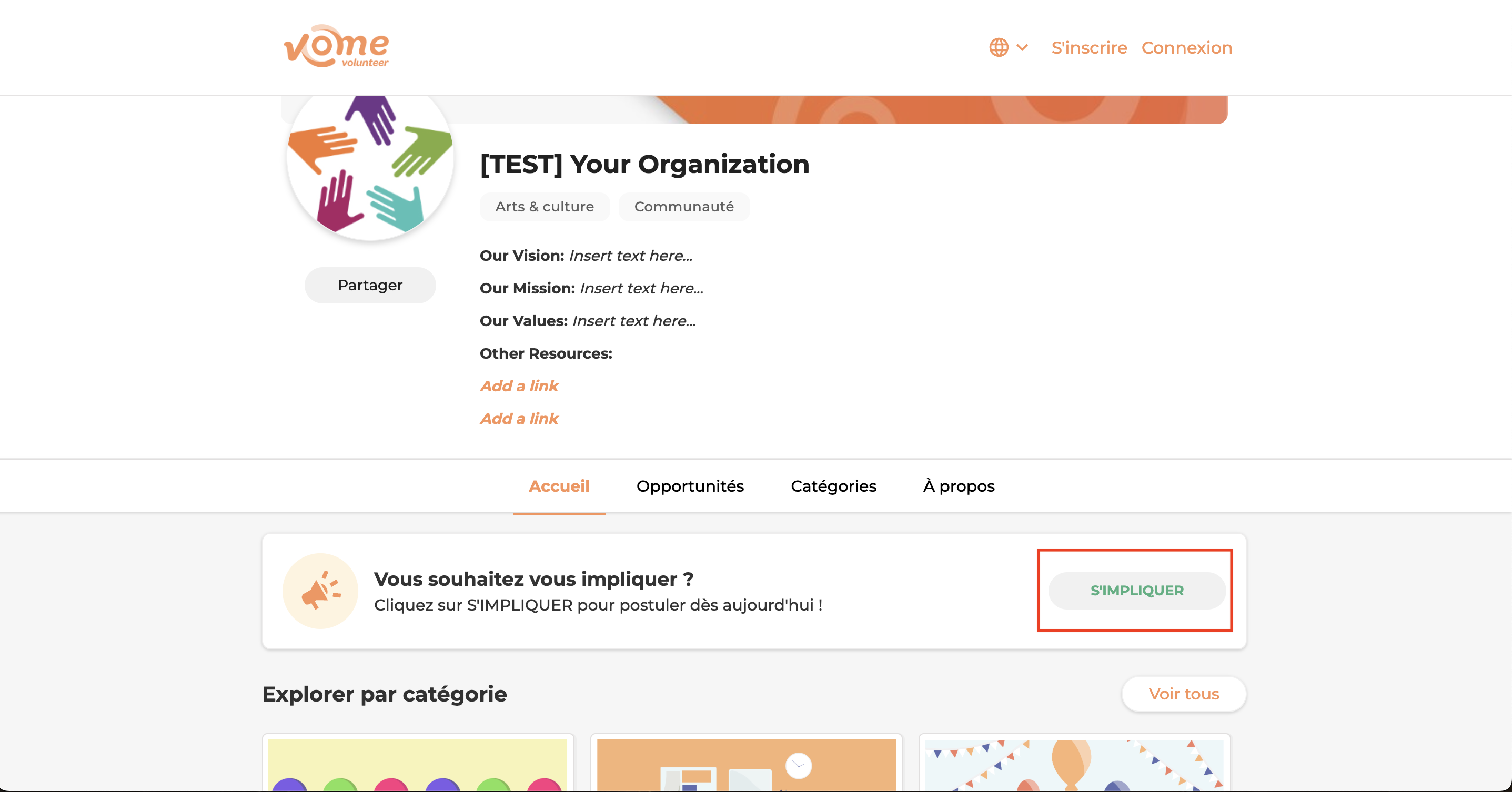 Exemple 2 : Si l’organisation propose un bouton S’impliquer, vous pouvez passer à l’étape suivante et soumettre un formulaire de demande générale.