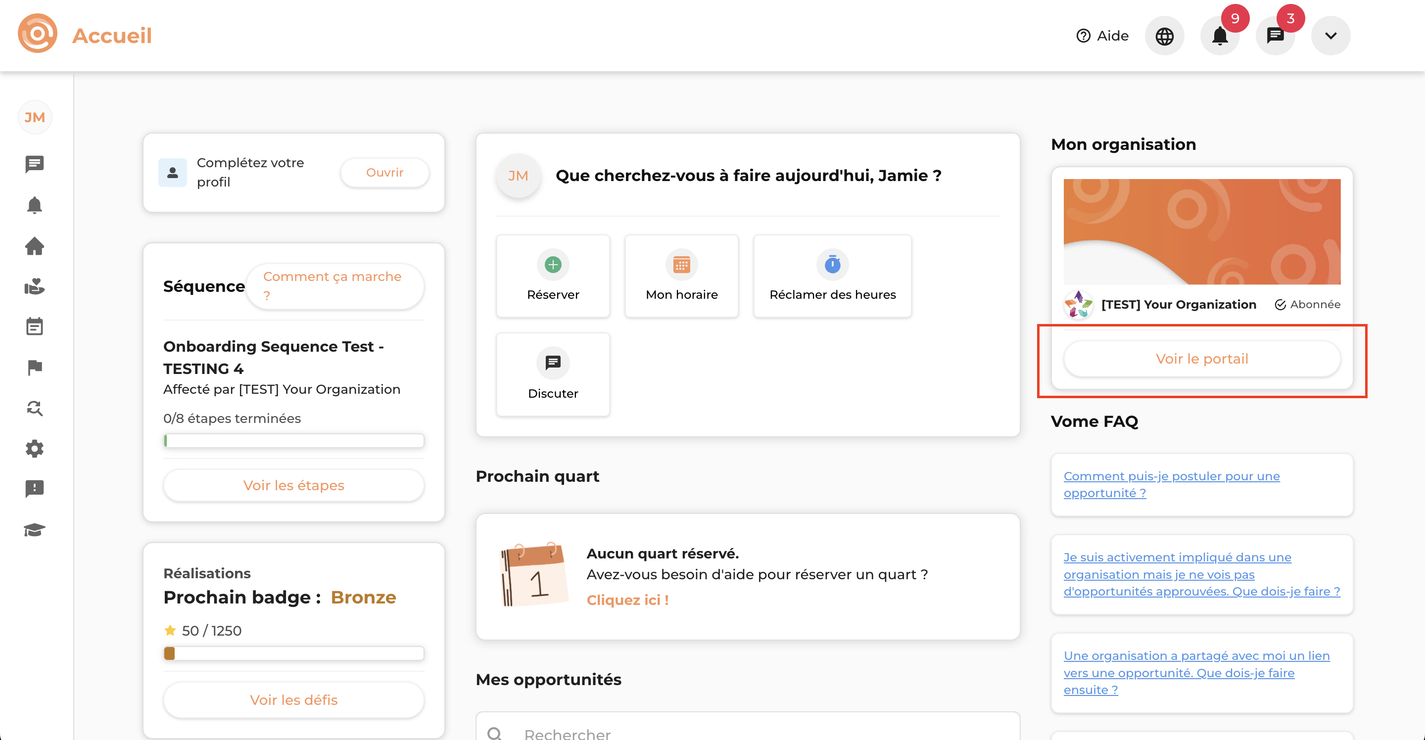 Vous pourrez alors réserver des quarts et suivre vos heures liés à l’opportunité.