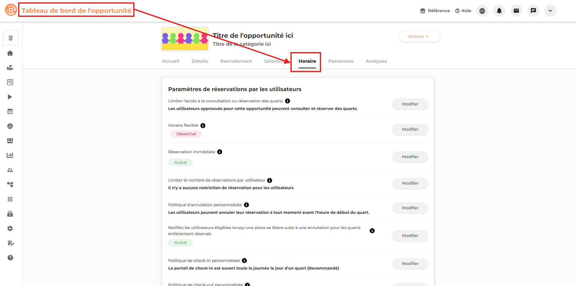 Lorsque vous créez ou modifiez une opportunité, plusieurs paramètres peuvent être configurés afin d'adapter le processus de réservation et de participation à vos besoins.